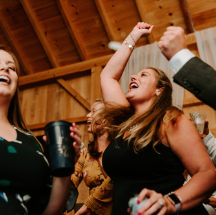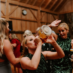 After a cute ceremony in front of the barn in Catonsville, Maryland, the doors opened up and everyone got wild! DJ Jacob Jensen had his hands full with these partiers for Jocelyn and Mike. Guests even broke into a train that went out the barn into the tent and looped back into the barn. Some of the bridesmaids were pouring shots of Fireball into guests mouths while dancing and occasionally, people were sprayed with beer.